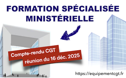 Compte-rendu CGT de la réunion de la Formation spécialisée en matière de santé, de sécurité et de conditions de travail du CSA Ministériel convoquée le 16 décembre 2025, détaillant comment la dégradation des effectifs et le mépris de nos conditions de travail conduisent droit (…)