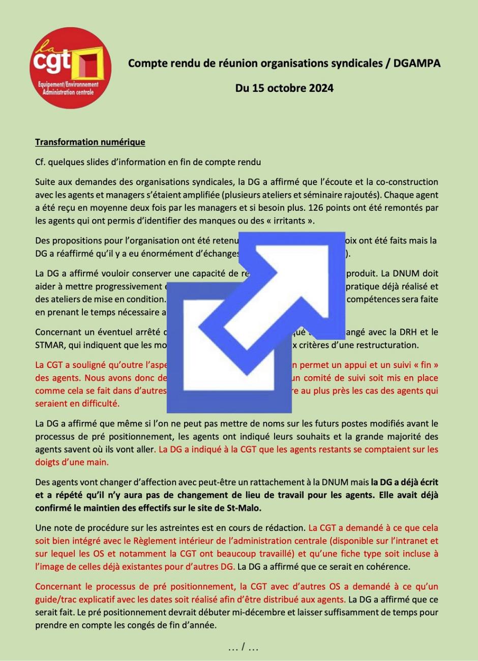 Vous trouverez ci-joint le compte-rendu CGT de la réunion des représentants des personnels avec la DGAMPA le 15 octobre 2024.