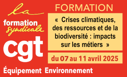 impacts sur les métiers » du 07 au 11 avril 2025, organisée par la Fédération de l’Équipement et de l’Environnement CGT, se déroulera au Centre de Formation CGT Benoît FRACHON, situé sur la commune de Gif-sur-Yvette (91). (Fiche pratique avec plan d’accès ci-joint).