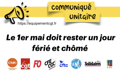 Communication CGT publiée le 27 juin et Communiqué unitaire des organisations syndicales sur la proposition de loi au Sénat qui attaque le 1er mai, seul jour chômé et payé.