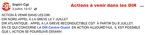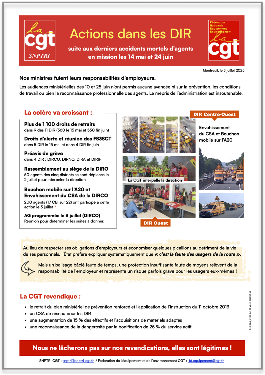 ● Infos complètes du SNPTRI CGT sur les actions entreprises dans les DIR à la suite de l’accident mortel du 24 juin (03 juillet 2025)