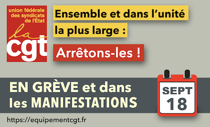 ◗ Faire du 18 septembre prochain une puissante et massive journée de grève et de manifestations, à l’appel de toutes les organisations syndicales, pour gagner sur nos revendications ;