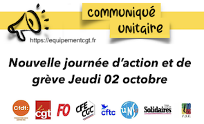 Aucune réponse claire n’ayant été apportée sur les enjeux qui se posent pour le monde du travail, l’intersyndicale appelle à amplifier la mobilisation lors d’une nouvelle journée d’action et de grève interprofessionnelle le jeudi 2 octobre.