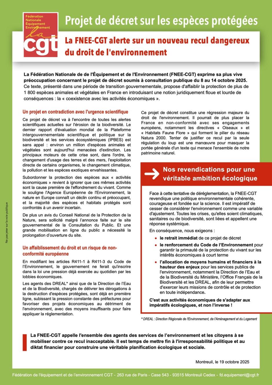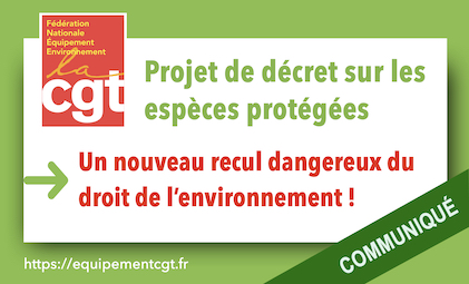 « Projet de décret sur les espèces protégées : la FNEE-CGT alerte sur un nouveau recul dangereux du droit de l’environnement ».