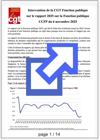 Intervention de la CGT au Conseil commun de la Fonction publique du 6 novembre 2025 ; Rapport annuel sur l’état de la Fonction publique et Chiffres clés publiés le 23 octobre 2025.