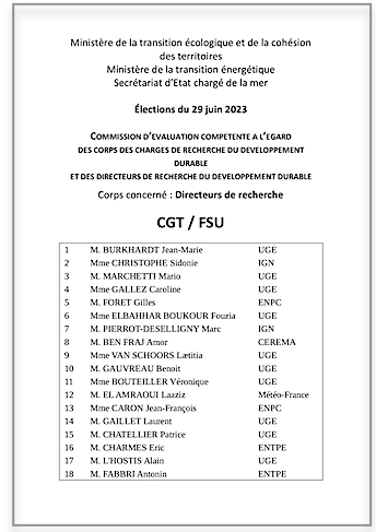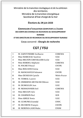 La liste CGT-FSU progresse en voix et en sièges chez les DR et CR par rapport aux dernières élections du 13 juin 2019. COMmission d’EVALuation des chercheurs du développement durable :