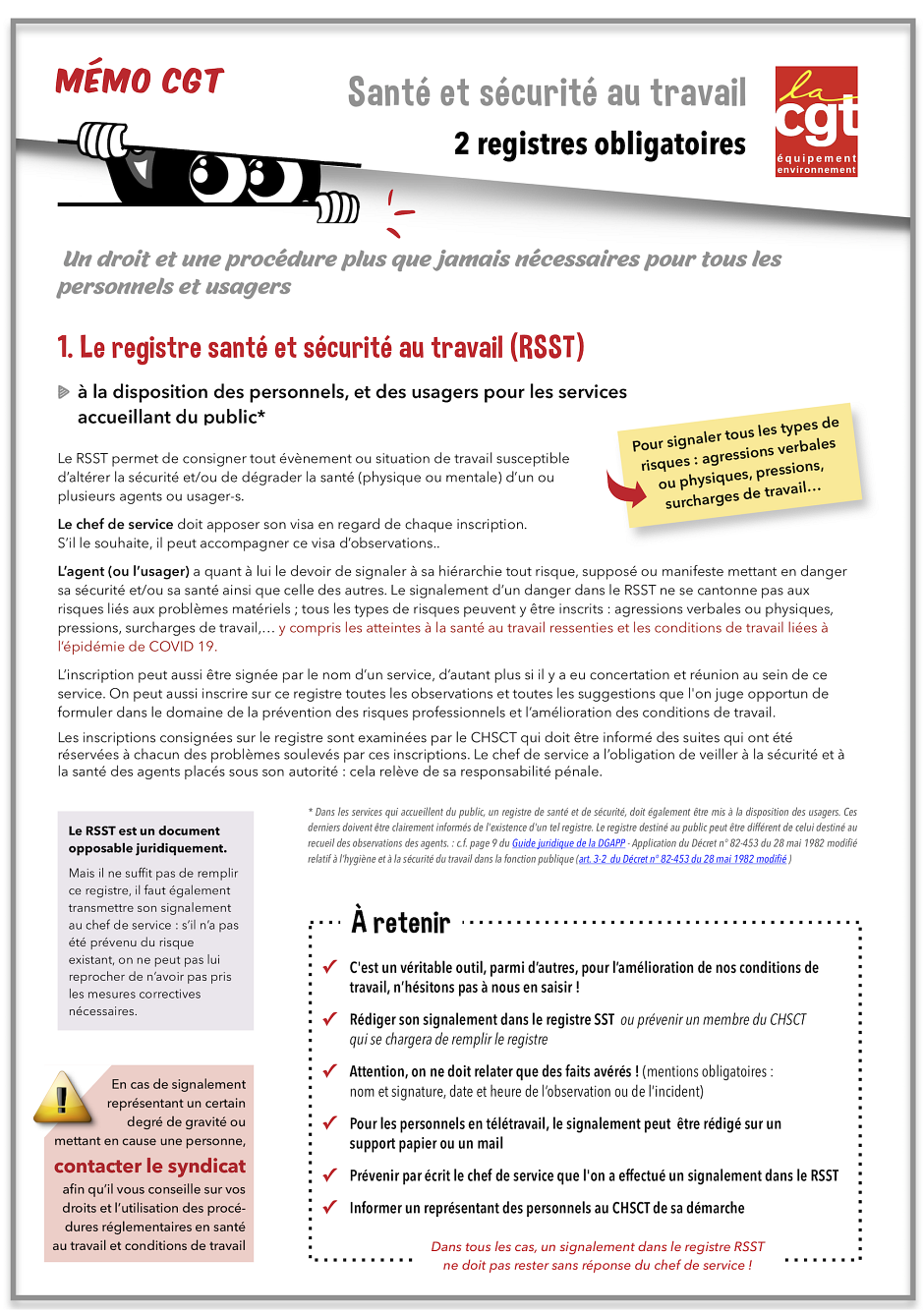 Ci-joint une FICHE-MÉMO CGT sur ces 2 registres obligatoires.