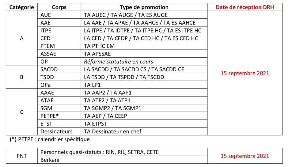 Note technique pour la mise en œuvre de la campagne de promotions 2022 et ses annexes pour certains personnels du MTE/MCTRCT/Mer .