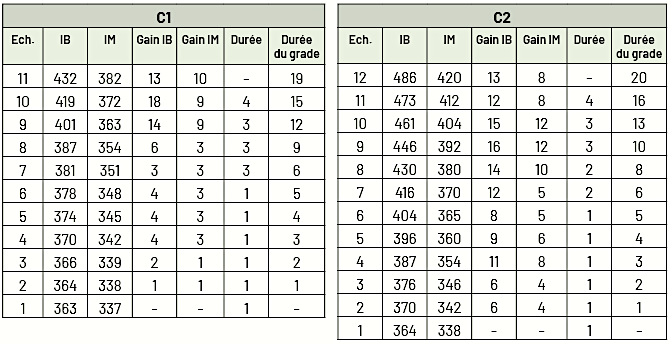 pour le grade C2 : IM 338 contre 334 et pour le grade C1 : IM 337 contre 332