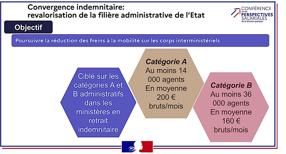 Lors d’une conférence de presse, tenue à l’issue de la réunion avec les syndicats, la ministre a expliqué que « l’augmentation générale de 1 % du salaire de tous les fonctionnaires reviendrait à dépenser deux milliards d’euros (dont 900 millions d’euros pour ceux qui sont employés par l’Etat). Mais pour les agents de catégorie C, cela ne représenterait qu’une augmentation de quatorze euros net par mois. Le choix ciblé du gouvernement se traduira donc par une revalorisation bien supérieure pour eux, et une enveloppe moins importante pour l’Etat : 250 millions d’euros. Chacun pour ses agents, la fonction publique territoriale et les hôpitaux devront appliquer les mesures annoncées mardi. »
