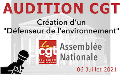 La lettre de mission du Premier ministre du 21 janvier demande un rapport de propositions à la mi-juillet, en vue de la création d’une nouvelle Autorité Indépendante, le « Défenseur de l’Environnement », sur le modèle du Défenseur des Droits - Audition de la CGT par Madame la députée Cécile Muschotti (LRM- députée du Var), missionnée par le Premier Ministre.