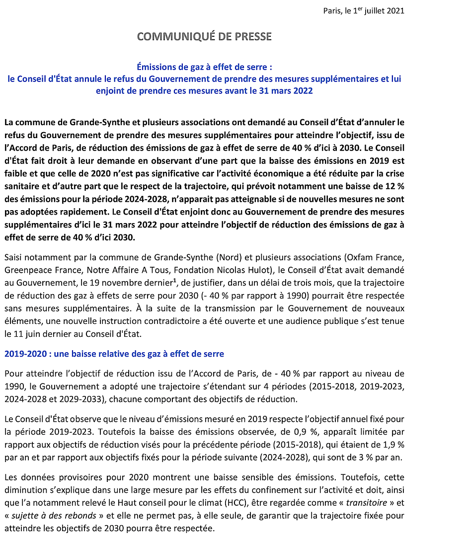 Lire le Communiqué de presse du Conseil d’État du 1er juillet 2021 :