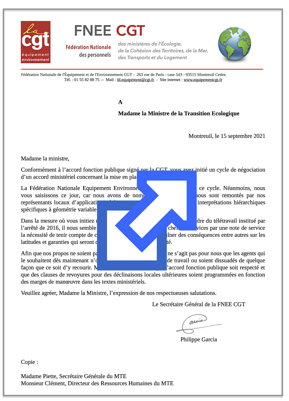 Courrier adressé à la Ministre du MTE le 15 septembre 2021.