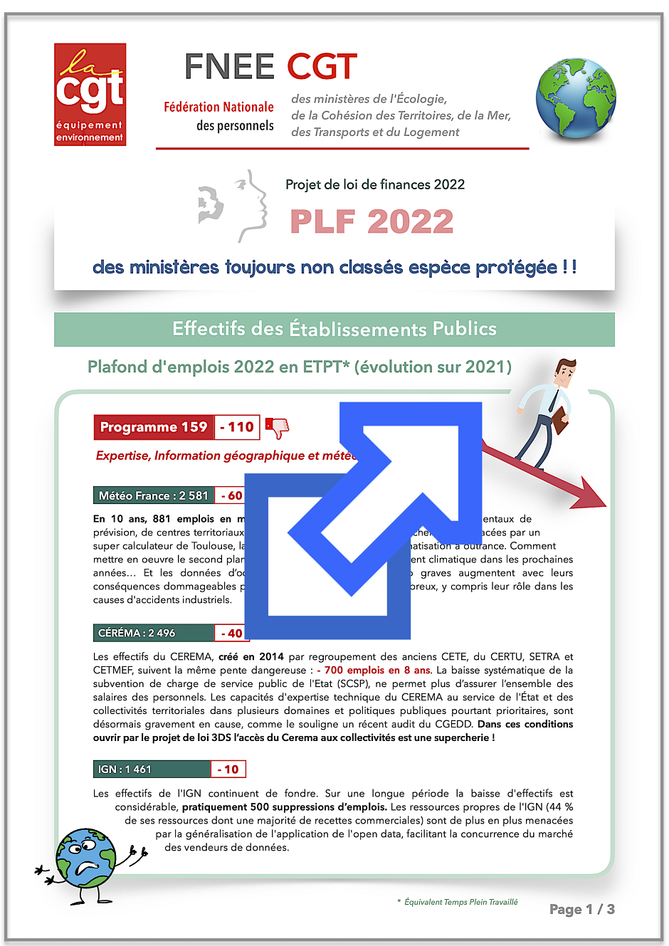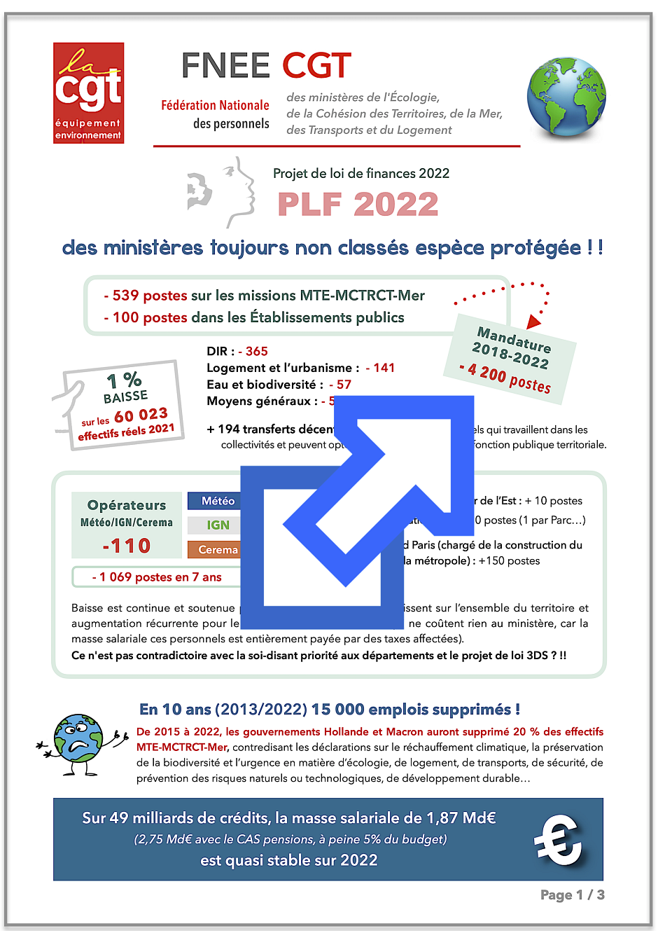 (Courrier CGT aux ministres et dossier de présentation du PLF 2022)