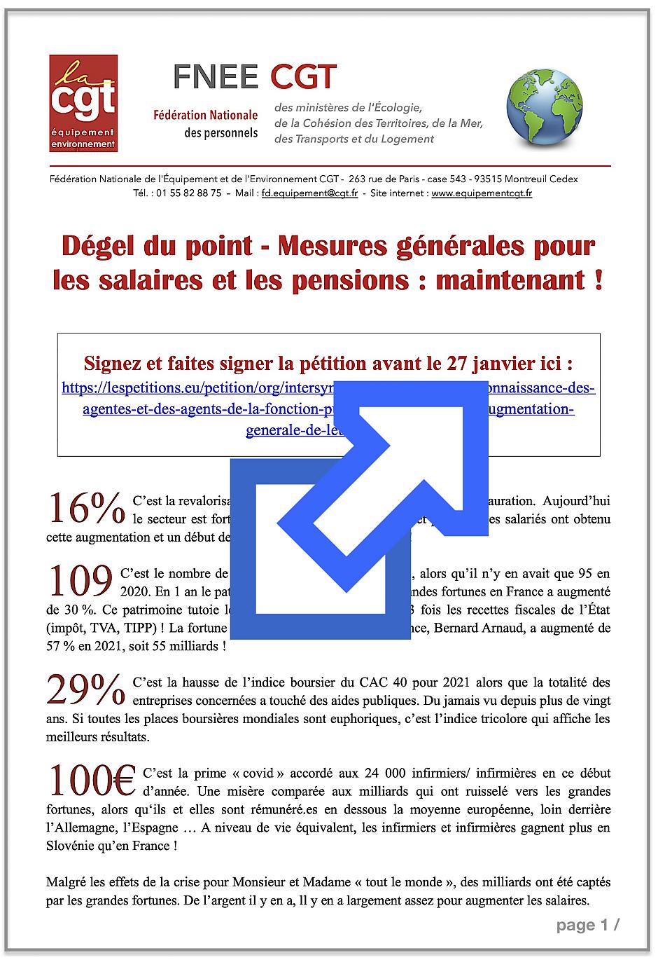 (rappel pétition à signer « La véritable reconnaissance des agentes et des agents de la fonction publique passe par une augmentation générale de leurs salaires »)
