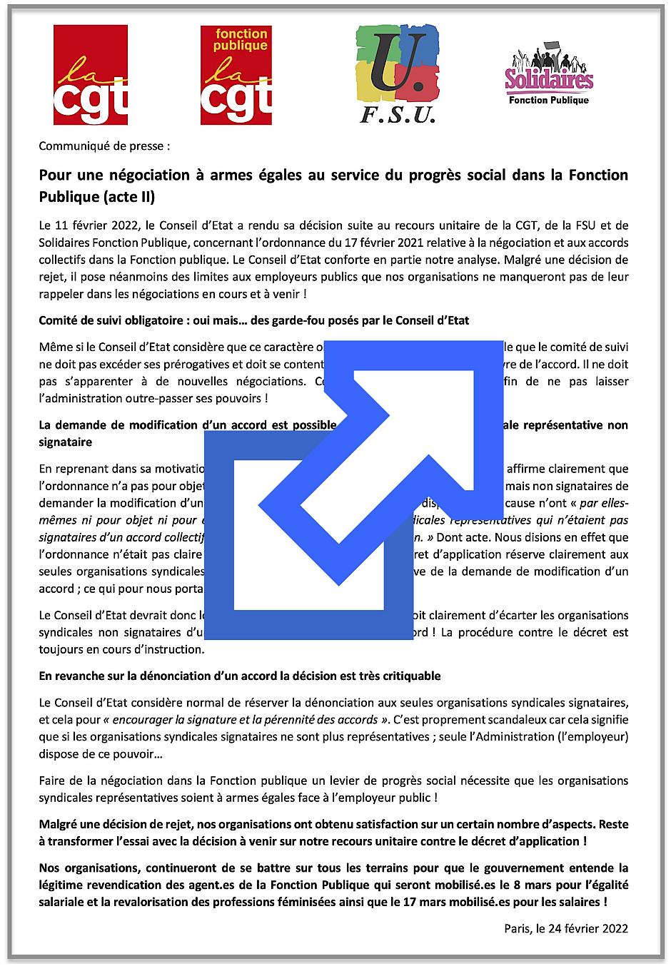 Communiqué de presse commun CGT-FSU-Solidaires du 24 février 2022.