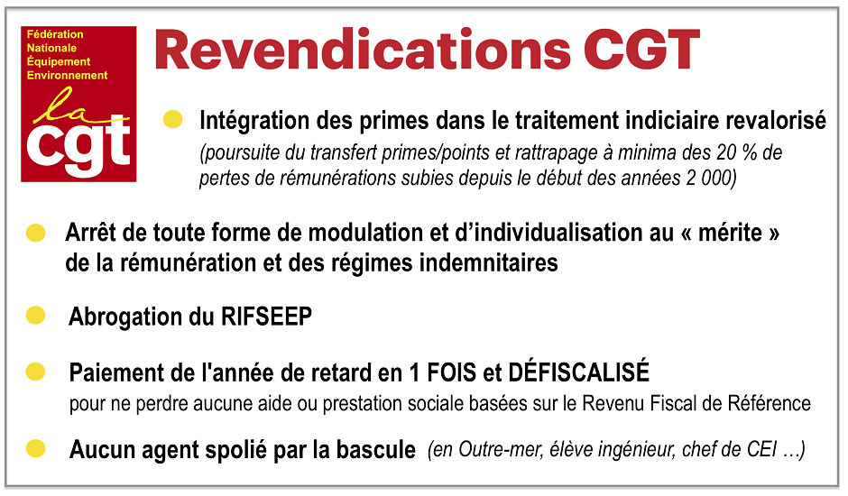 Voir aussi les "exemples bascule" : 11 cas de figure transmis aux services par la DRH du MTE (aux bureaux RH de proximité pour effectuer les calculs) et envoyés aux syndicats sur demande insistante de la CGT lors de cette réunion, afin d’apporter aux agents les explications qui leur manquent.