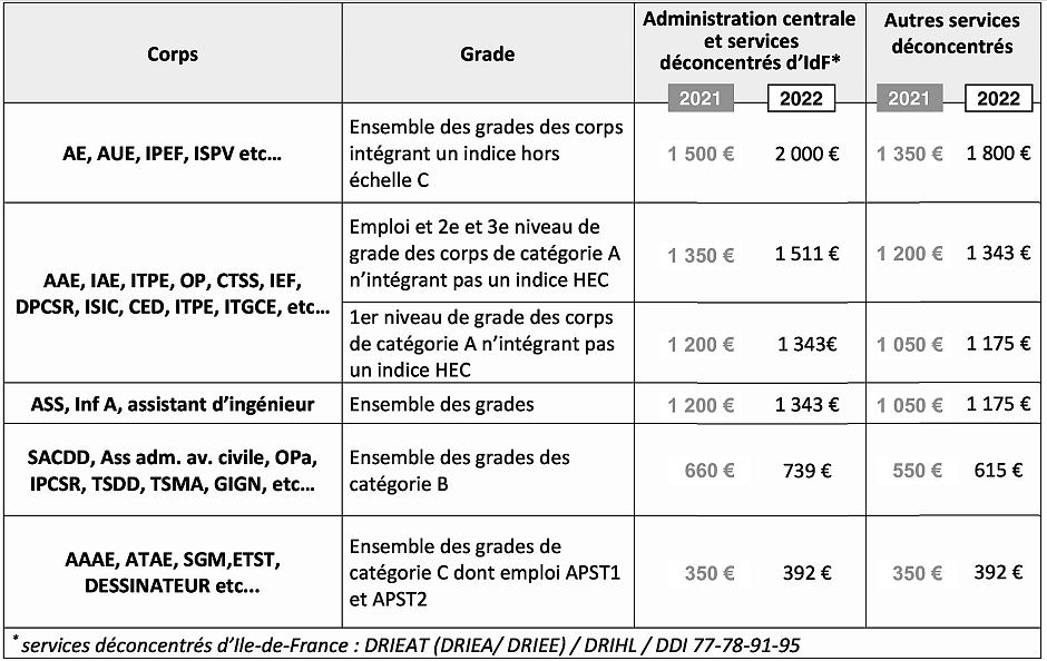 AVANCÉES OBTENUES PAR LES ORGANISATIONS SYNDICALES À COMPTER DU 1ER JANVIER 2022 :
