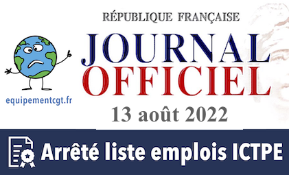 Ci-joint l’Arrêté du 29 juillet 2022 fixant la liste des emplois d’ingénieur en chef des travaux publics de l’Etat du 1er et du 2e groupe au sein des services du ministère de la transition écologique et de la cohésion des territoires, publié au JORF du 13 août 2022.