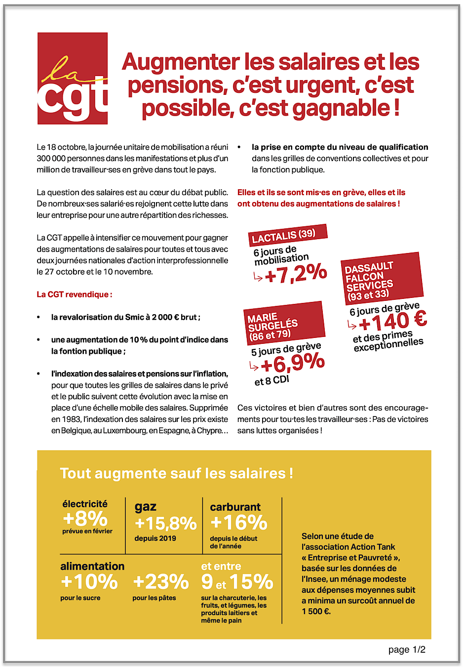 Tract de la confédération « Augmenter les salaires et les pensions, c’est urgent, c’est possible, c’est gagnable ! »