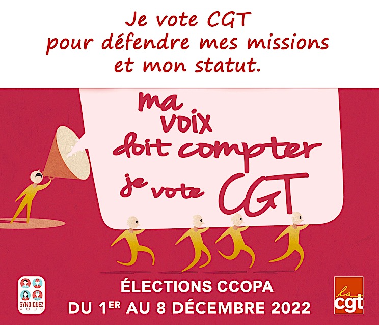 Du 1er au 8 décembre 2022, vous allez être appelés à voter dans une période cruciale pour les OPA. En accordant à nouveau votre confiance et en renforçant la CGT, vous donnerez les moyens de continuer le travail engagé et contribuerez à l’unité.