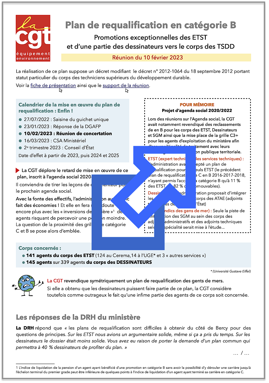 Compte-rendu de la réunion du 10 février 2023, relative à la mise en œuvre du plan de requalification en cat. B du corps des Experts techniques des services techniques et d’une partie des Dessinateurs :