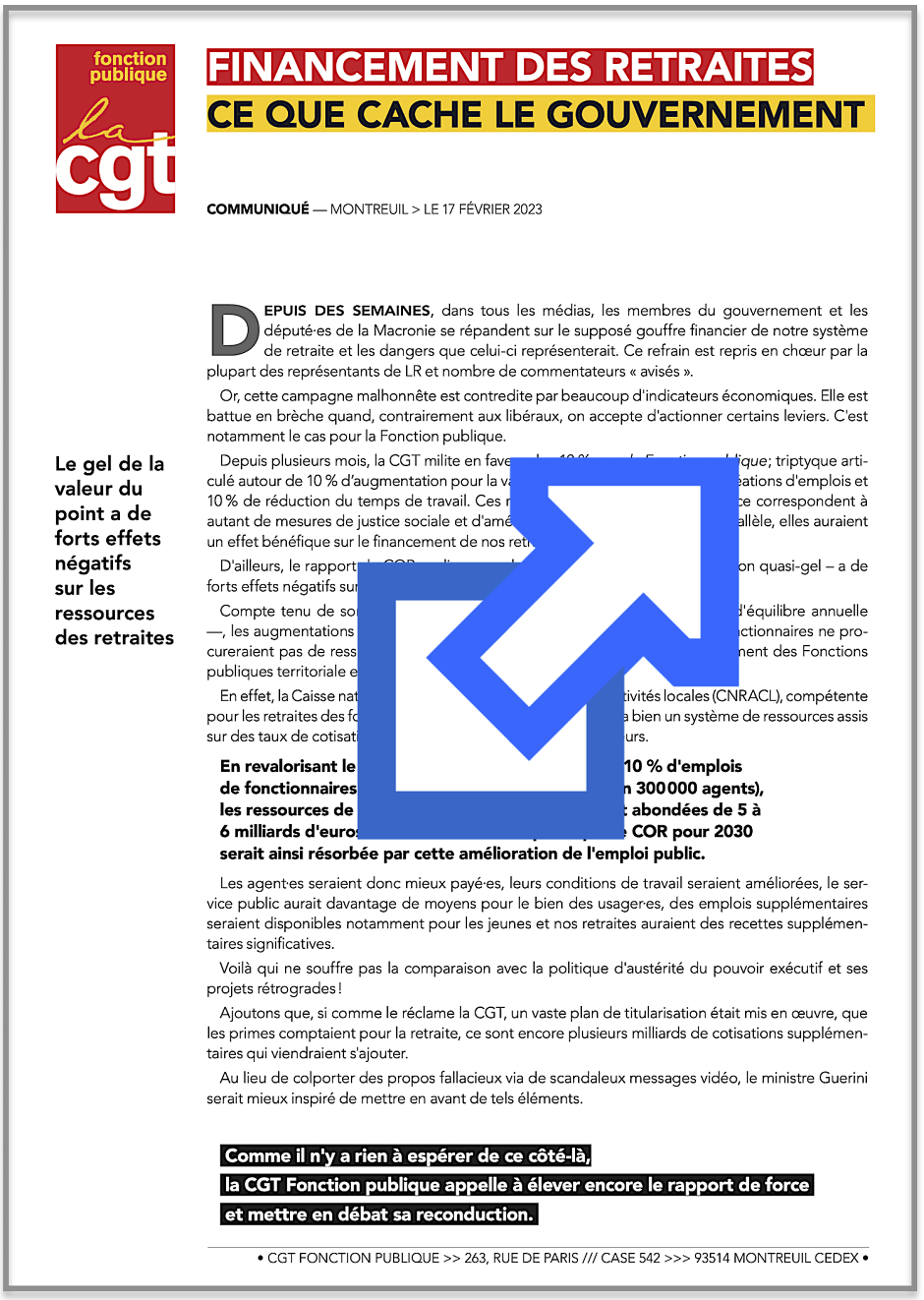 Ci-joint le communiqué de la CGT Fonction Publique du 17 février 2023.