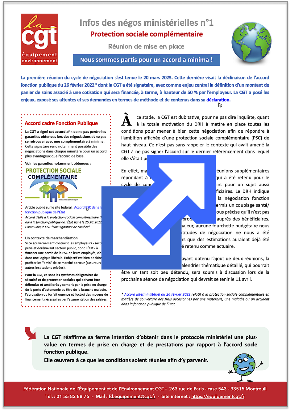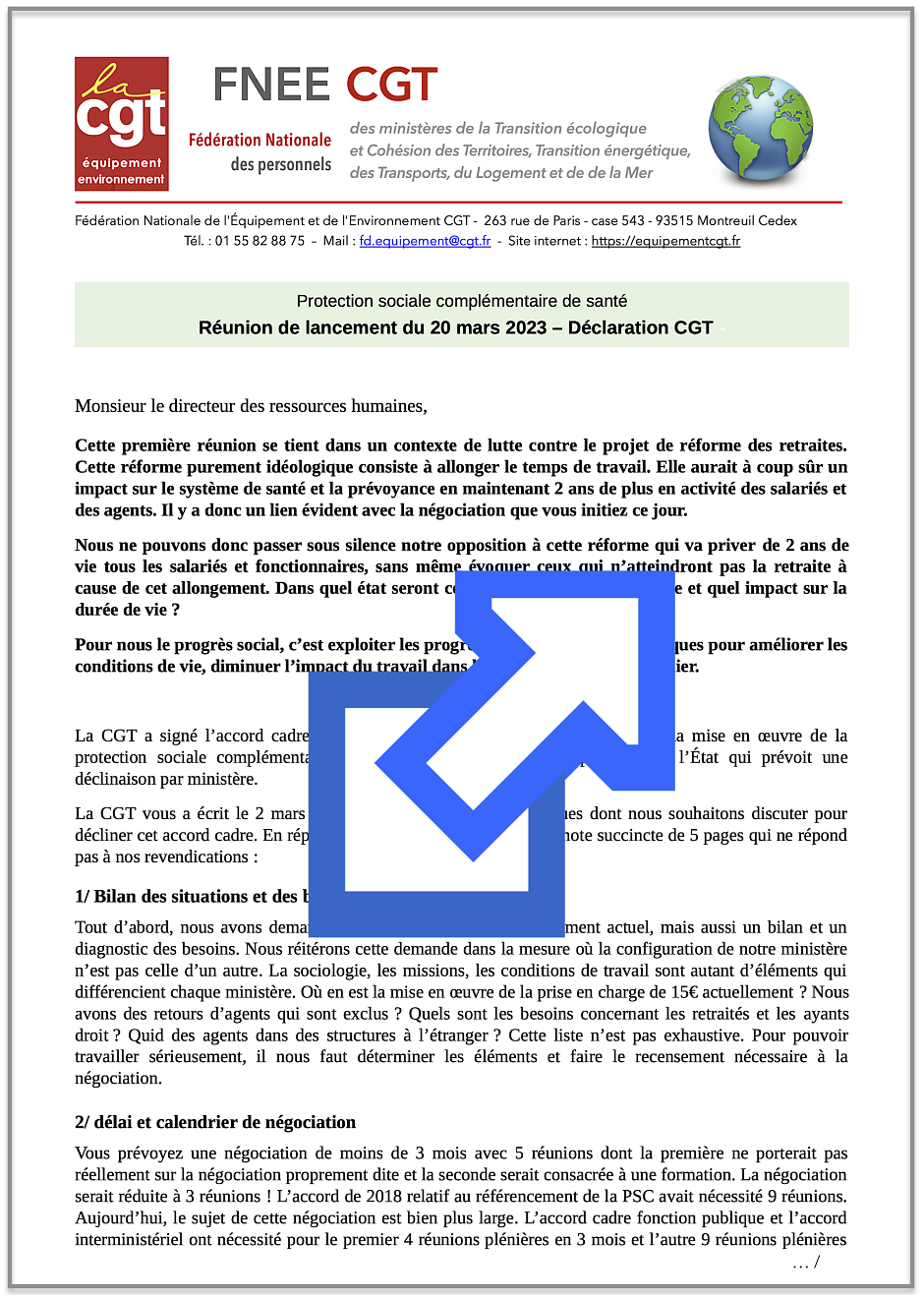 Déclaration et communiqué CGT suite à la réunion de mise en place du cycle de négociation sur la Protection Sociale Complémentaire qui s’est tenue le 20 mars 2023 : Nous sommes partis pour un accord a minima !