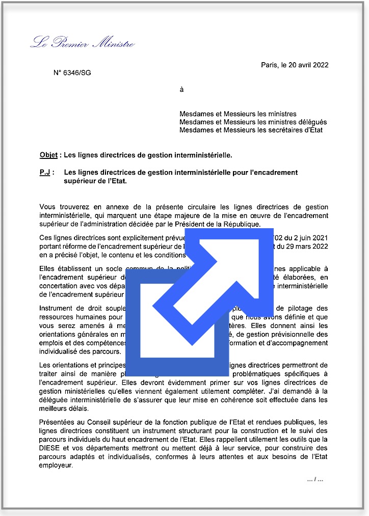 Circulaire n° 6346-SG du 20 avril 2022 relative aux lignes directrices de gestion interministérielle applicables aux agents de l’encadrement supérieur de l’État.