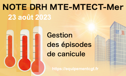 NOTA : En cas d’alerte « vigilance rouge » par Météo France, la note ministérielle ne fait pas cas des recommandations de la DGAFP concernant, le cas échéant, l’arrêt de l’activité si l’évaluation fait apparaître que les mesures prises sont insuffisantes au regard des conditions climatiques.