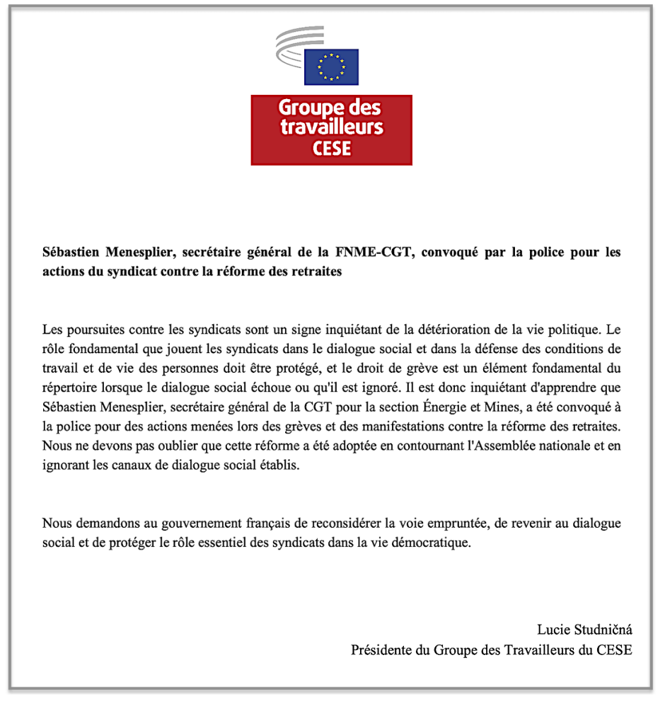 - Note de l’Espace international de la CGT du 5 juillet 2023