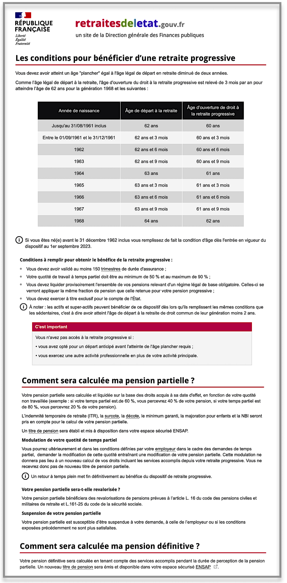 FAQ DGAFP du 1er septembre et infos actualisées le 31 août 2023 sur le site retraitedeletat.gouv.fr (un site de la DGFIP - Direction générale des Finances publiques).