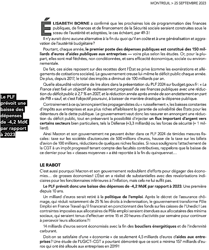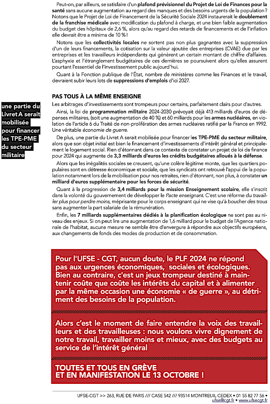 Ci-joint le Tract de l’UFSE-CGT (Union fédérale des syndicats de l’État) du 25 septembre 2023.