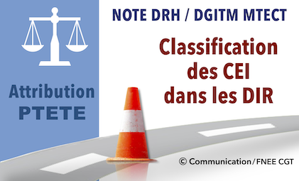 Note DRH/DGITM ayant pour objet la nouvelle classification applicable aux fonctions exercées au sein des CEI des DIR pour l’attribution de la PTETE et la liste des 39 CEI reclassés dans la classe supérieure (B ou C), adressée aux DIR le 06/11/2023 (copie aux RZGE des effectifs DREAL et DRIEAT, Directeur du CMGP).