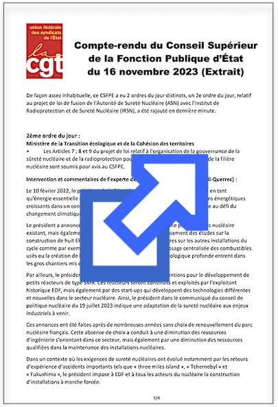 Conseil supérieur de la fonction publique de l’État, CSFPE du 16 novembre 2023 : articles 7 ; 8 et 9 du projet de loi soumis pour avis (2e ordre du jour, rajouté en dernière minute, relatif au projet de loi de fusion de l’ASN avec l’IRSN) :