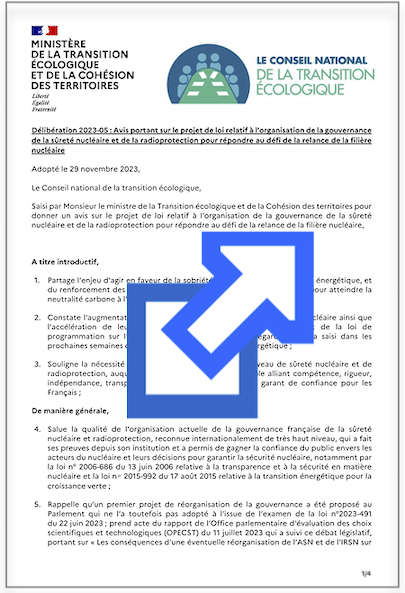 * En mars, les députés ont en effet rejeté le projet la réforme de la sûreté du gouvernement glissé dans un amendement législatif, donc soumise sans concertation et sans aucun diagnostic préalable. (Le reste du projet de loi du 22 juin 2023 relatif à l’accélération des procédures administratives pour construire de nouveaux réacteurs nucléaires a été adopté). Le gouvernement avait dû faire marche arrière et renoncer à la fusion des deux organismes de surveillance.