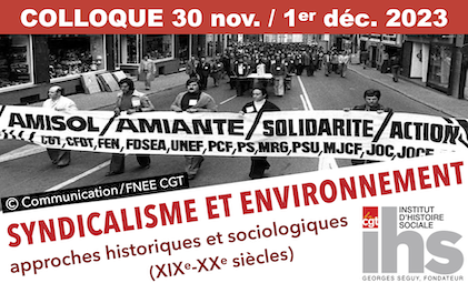 Un ouvrage sera publié prochainement avec les actes du Colloque ayant pour thématique “Syndicalisme et environnement : approches historiques et sociologiques (19e -20e siècles)” organisé par l’IHS CGT,