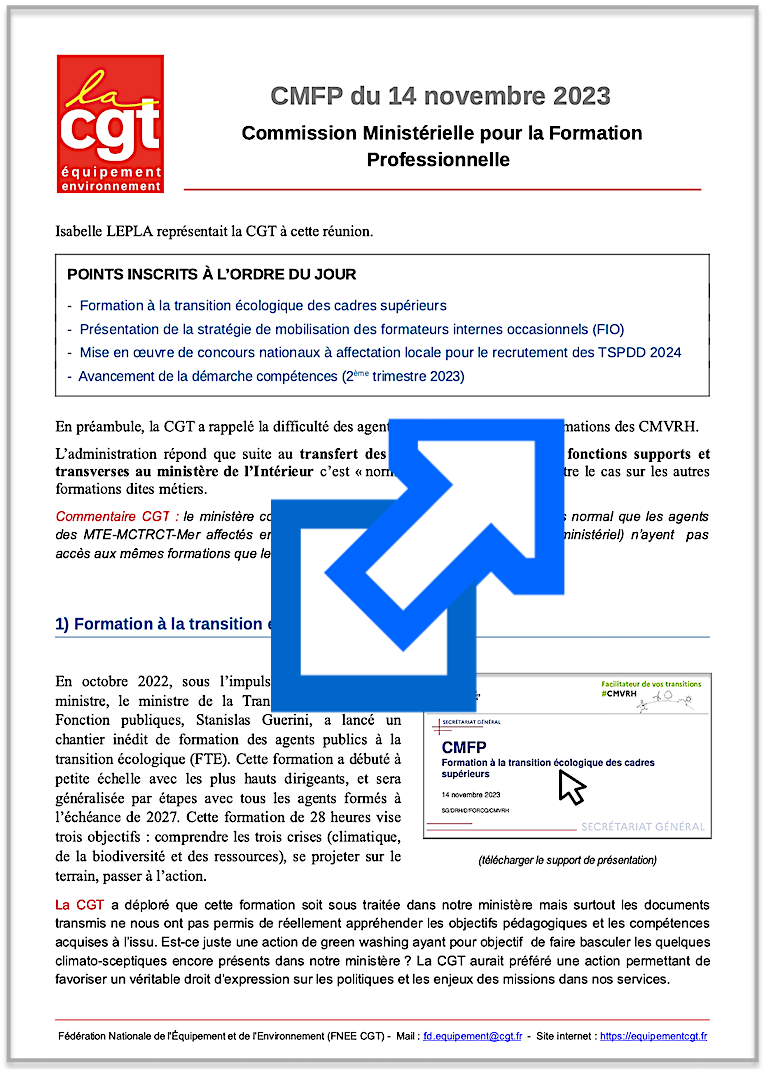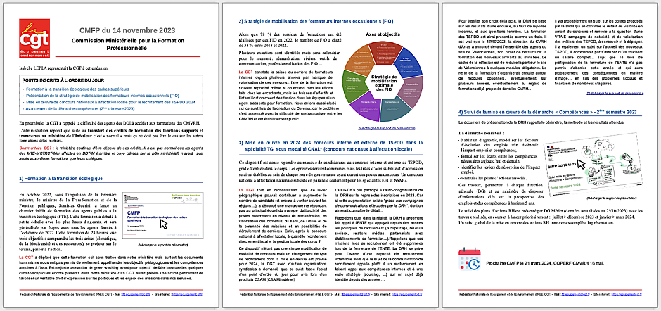 Vous trouverez ci-joint le compte-rendu CGT de la Commission ministérielle pour la Formation Professionnelle qui s’est déroulée le 14 novembre 2023.