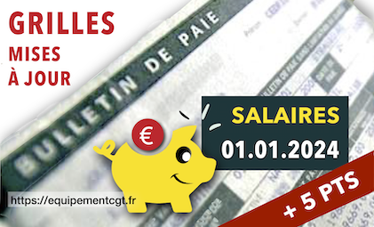 Liens d’accès vers les grilles de salaires en vigueur pour les principaux agents du ministère. 5 points d’indice majoré sont attribués au 1er janvier 2024 pour tous les agents public, par le décret du 28 juin 2023. Avec 24,61 euros brut supplémentaires au 1er janvier, les débuts de grilles de la Fonction Publique sont maintenues juste au-dessus du SMIC ! Même avec une inflation plus faible en 2024, les grilles indiciaires seront à nouveau rapidement rattrapées par le SMIC sans nouvelles mesures salariales.