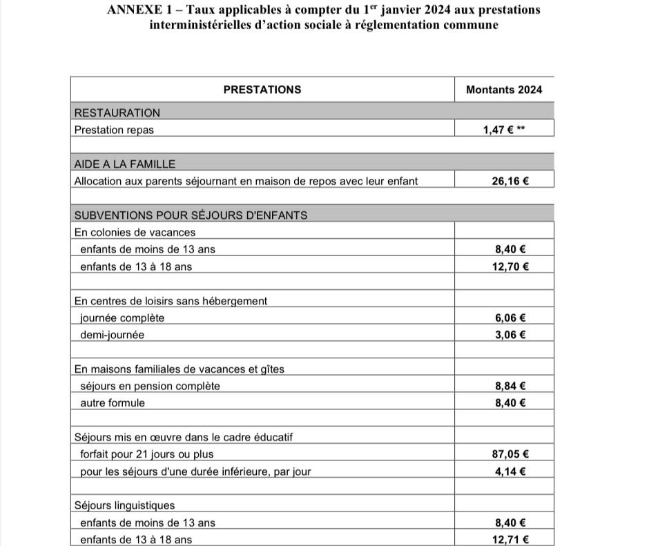 Circulaire du 4 janvier 2024 relative aux prestations interministérielles d’action sociale à réglementation commune : restauration, aide à la famille, séjours enfants, enfants handicapés.