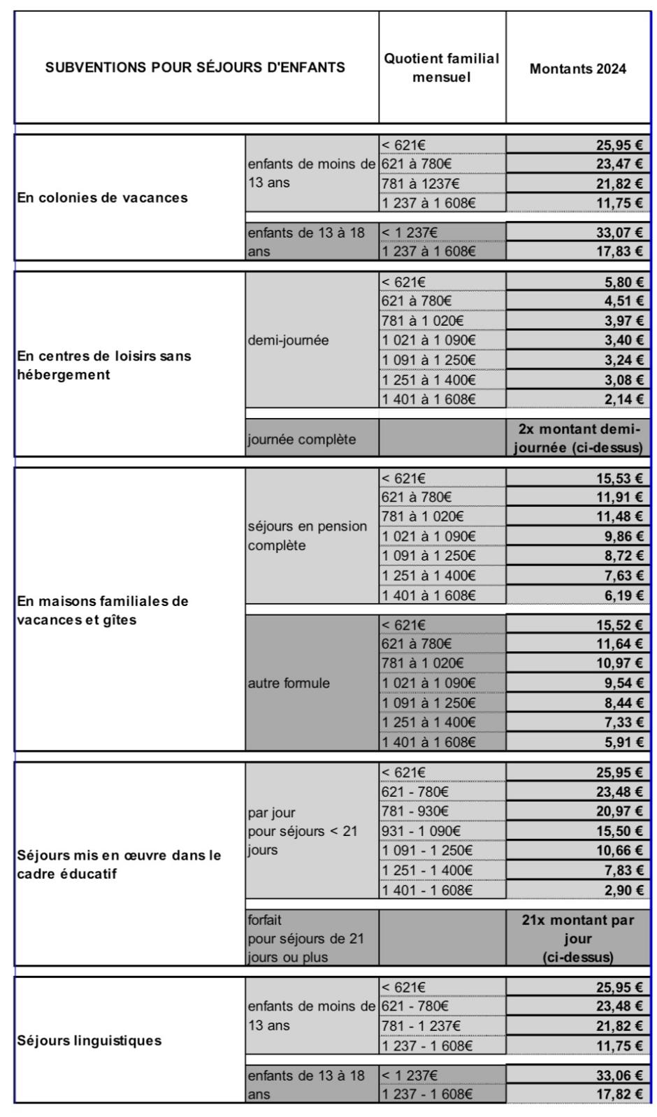 Circulaire du 04 janvier 2024 relative au barème commun applicable aux prestations pour séjours d’enfants au bénéfice des agents dont la gestion relève des SGCD* (agents affectés en DDI : DDT-M, DDCS...)