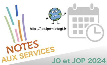 Note du SG du MTECT du 26 février 2024 et Note de la DRH du MTECT du 12 janvier 2024 transmise aux services, ayant pour objet l’organisation du travail et des congés, les modalités d’accès aux sites et le recours aux transports en commun pendant la période des Jeux olympiques et para olympiques de 2024.