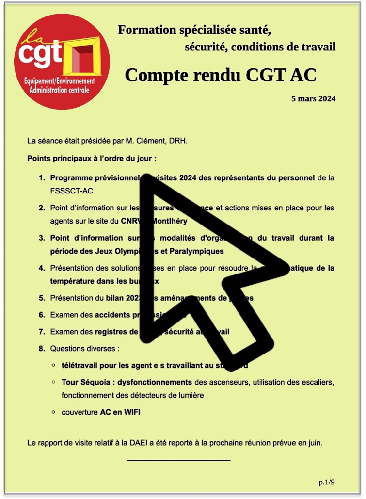 Compte-rendu CGT de la Formation spécialisée santé, sécurité, conditions de travail d’AC du 5 mars 2024.
