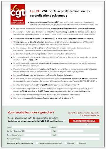 Pour participer, rapprochez-vous de vos représentants CGT localement ou contacter la FNEE CGT : fd.equipement@cgt.fr
