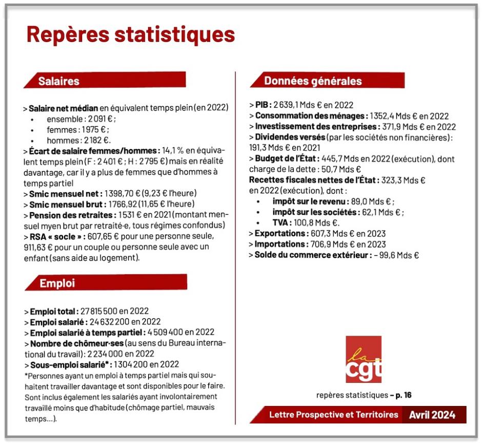 Repères statistiques en dernière page : Salaires - Emploi - Données générale (Voir ci-dessous)