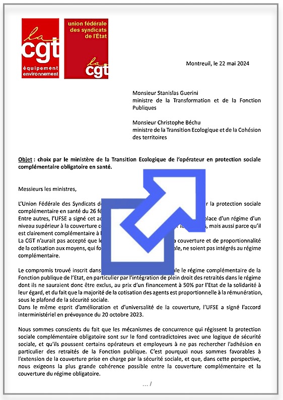 Courrier commun de l’UFSE-CGT (Union fédérale des syndicats de l’État) et de la FNEE-CGT aux ministres / Communiqué CGT, FO, FSU : "HOLD-UP sur la Protection Sociale Complémentaire au ministère MTECT et dans ses établissements publics affiliés !" envoyé aux personnels.