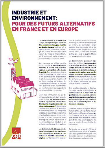 et le 4 pages CGT "Industrie et environnement : pour des futurs alternatifs en France et en « Europe" ».