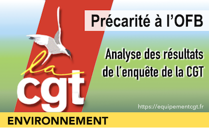 Les résultats de l’enquête précarité à l’OFB confirment les craintes de la CGT Environnement sur la situation de souffrance des personnels de l’OFB : voir l’analyse des résultats en ligne (taux de réponse de 62 %)