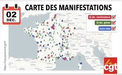 RAPPEL : Mardi 02 décembre, grévons et manifestons partout ! (Carte des manif.)