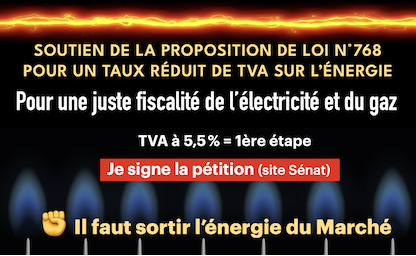 ✊ Signons la pétition* « Pour une juste fiscalité de l’électricité et du gaz - Soutien de la proposition de loi n°768 pour un taux réduit de TVA sur l’énergie » déposée le 12/09/2025. Recueil des (…)